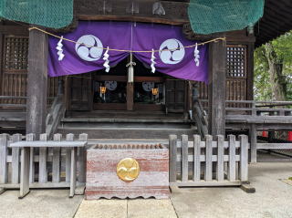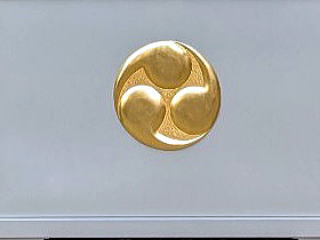 ステンレス賽銭箱を新調に伴い。既存巴紋は修復し、使用させて頂きました。